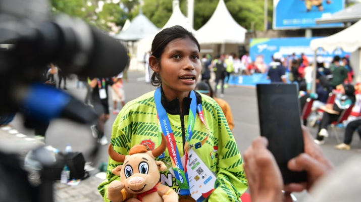 “Tadi saya berdoa supaya saya jangan lari masuk lintasan pelari lainnya. Saya bersyukur tadi saya bisa lewati yang saya pikirkan dan akhirnya saya juara 1,” kenang Yosintha.