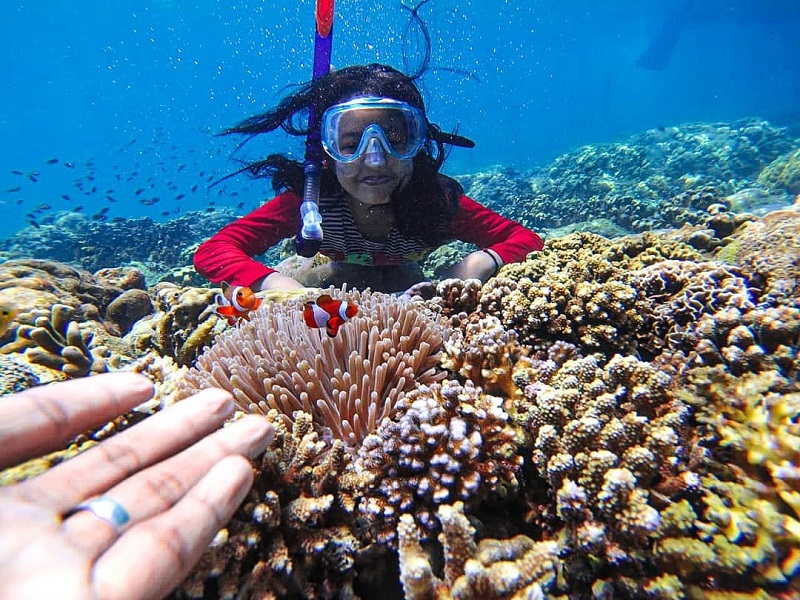Begitu snorkeling, Anda Bisa Menyaksikan alam Dasar laut yang eksotik. Berbagai Corak jenis ikan dan gugusan terumbu karang terjaga dengan Bagus. Di sini, Anda pun Bisa menyapa ikan badut atau Bisa di sebut “nemo” yang bersembunyi di anemon. Waah, Mantap kan…jangan lupa langsung’klik’ Demi di upload di sosmed. Melalui XL Axiata 4.5G yang jaringan internetnya Konsisten, upload photo-photo Anda di sosmed Lancar.
